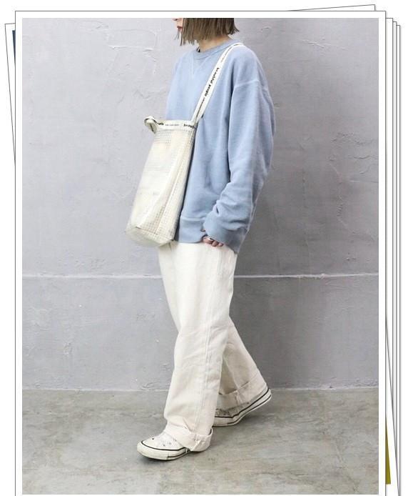 浅蓝色运动衫和白色裤子搭配,鞋包也都选择白色的休闲单品,带来清新而又舒适的look。柔和的色彩即使在休闲穿搭中也会让你感到优雅。